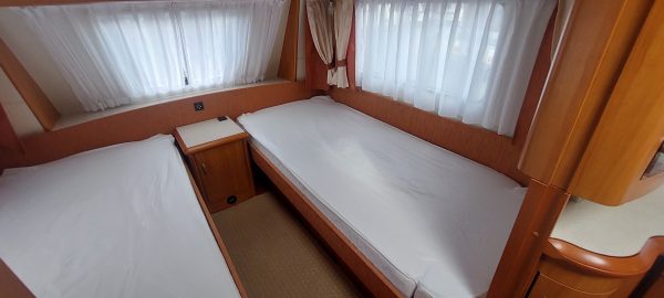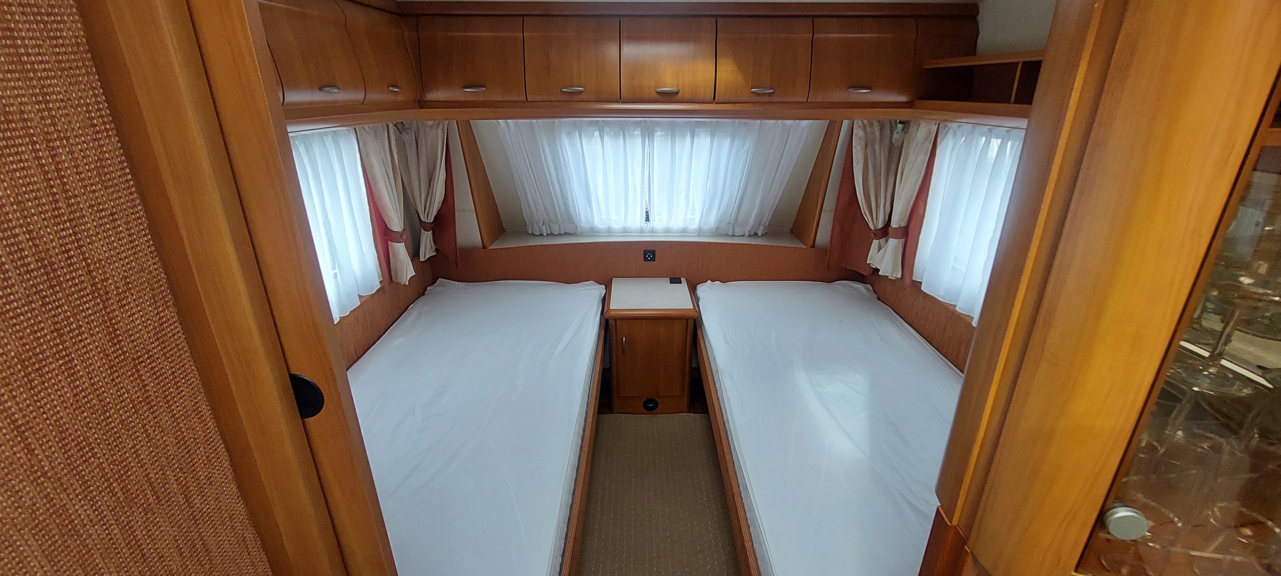 Voorin 2 enkele bedden, dit gedeelte is af te sluiten dmv schuifdeurtjes.