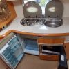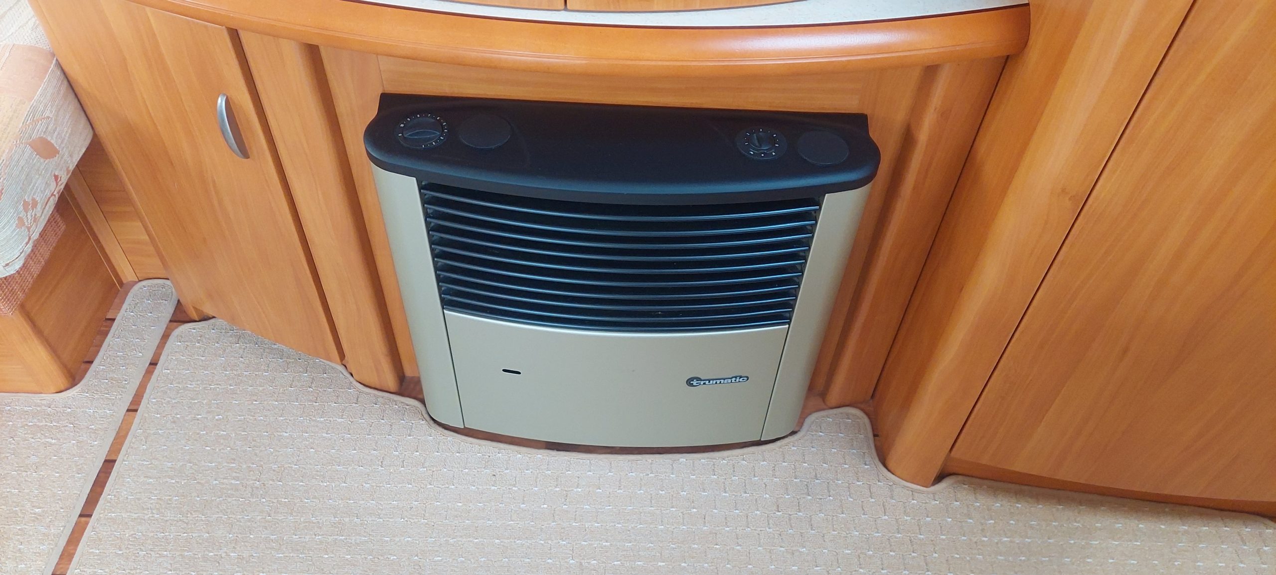 Daar tegenover veel kastruimte, gaskachel en toiletruimte met cassettetoilet.